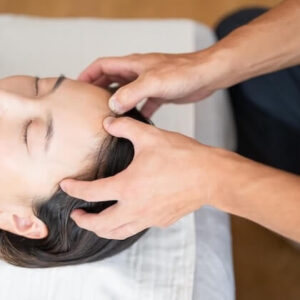 当院のヘッドスパは、水やオイルを使用しないドライヘッドスパになります。頭だけでなく、顔・首・肩まわりも丁寧にほぐし、指先や手のひらでやさしい圧をかけながら血流を促進します。心地よさを最優先に調整し、緊張や疲れを和らげ、深いリラックス状態へ導きます。
