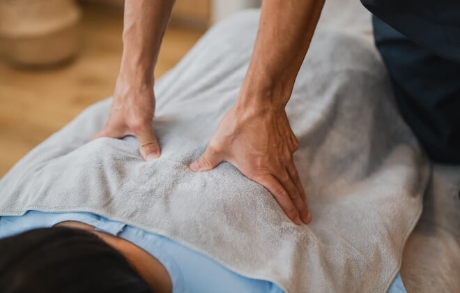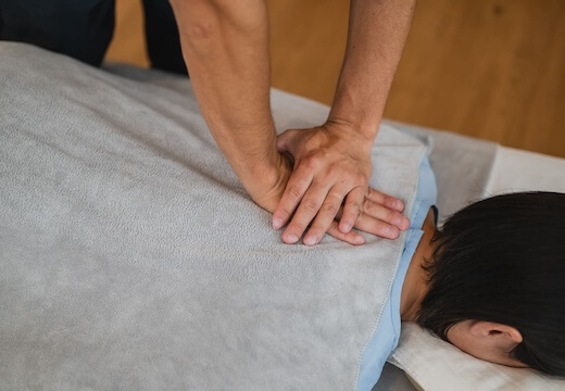当院の指圧施術(60分)は、痛みやこりのある部位だけでなく、全身の筋肉やツボを丁寧にほぐすことで体全体のバランスを整えます。全身を整えることで、症状の改善効果をより高め、疲れやだるさの解消、心身のリラックスにもつながります。