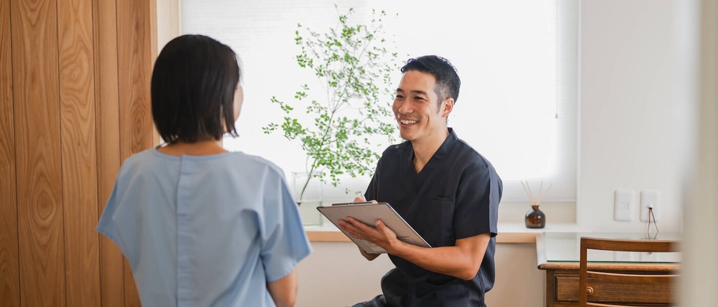 筋力の低下で外出もままならない主人のため、医療保険による訪問リハビリマッサージを利用させてもらっています。半年ほど続ける中で最近は本人も調子が良いようで笑顔が増えました。こちらの先生は経験豊富で私も大変信頼しています。
